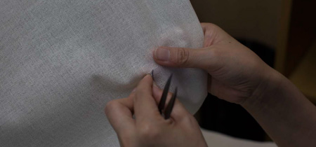 弱撚糸を使っているため、澱粉糊で糊付けをします。